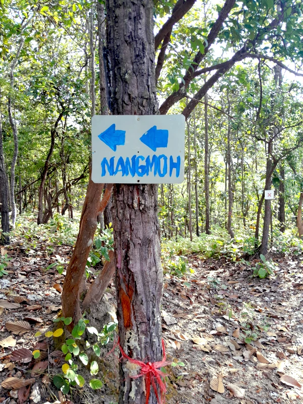 The forest path gradually ascends for about 2 kilometers. Be sure to watch for a fork where you’ll need to take the left-hand path marked with a “Nangmoh” sign featuring arrows.