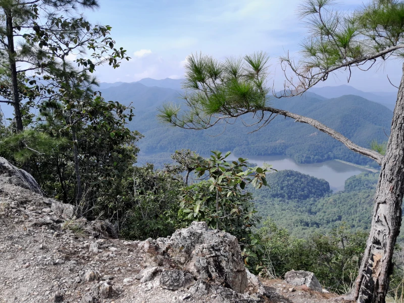 The hiking loop begins at the Pa Haen Reservoir parking lot. If you choose to go in a counterclockwise direction, as most hikers do, your journey starts with a walk of just over a kilometer along the reservoir’s shoreline before turning into the forest. Note that as of November 2024, neither the trailhead—located north of the parking area—nor the turn into the forest were marked; thus, GPS navigation will be essential from the outset.